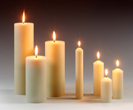 Many churches these days, like our own, use – instead of ordinary candles – oil-filled ones. The advantages are that they are cheaper, cleaner, they’re not carcinogenic, and they never burn down. However long they burn for, they always look just like new.